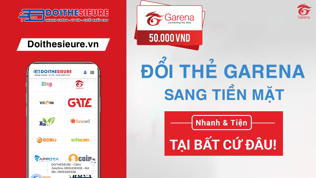 Đổi thẻ Garena sang tiền mặt tại Doithesieure.vn