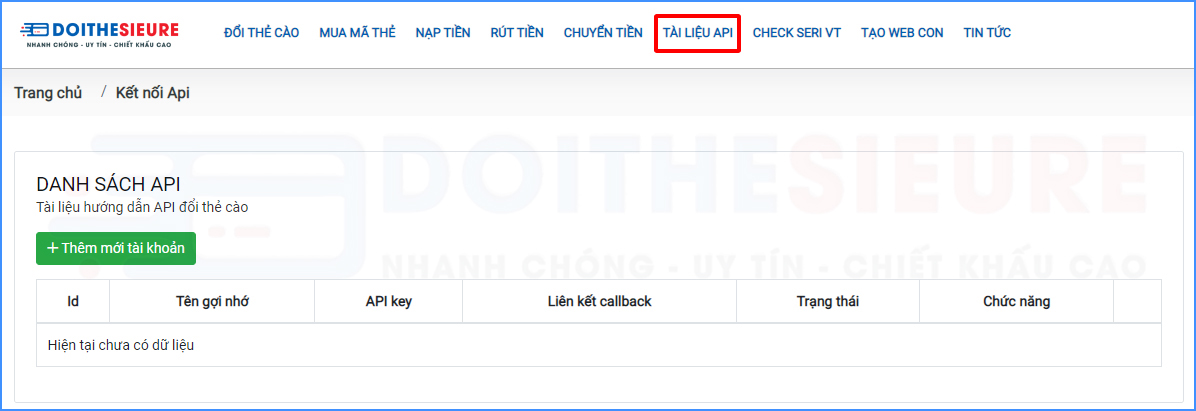Để tiến hành kết nối API gạch thẻ tại Doithesieure.vn, bạn sẽ thực hiện qua các thao tác sau đây:
