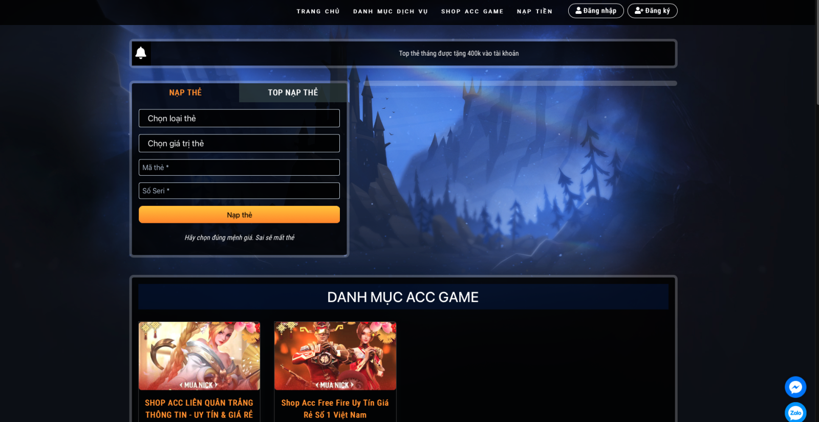 Từ khóa: doithesieure đổi thẻ code web shopgame shop acc game thiết kế web
