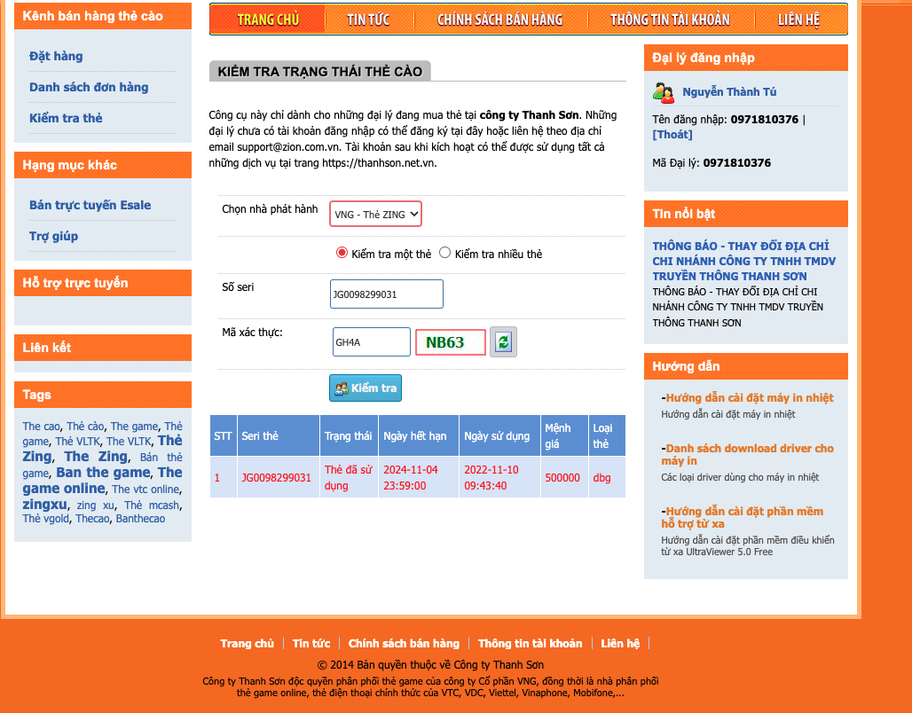 Vấn đề đặt ra làm cách nào kiểm tra được thẻ zing oline mà không phải gọi tổng đài VNG: